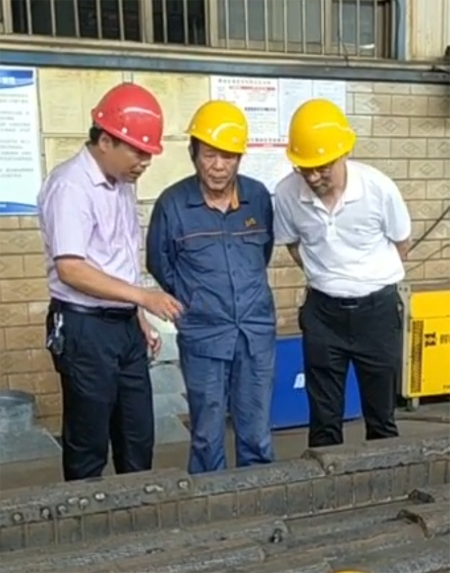 2021年7月15日,公司再次邀請(qǐng)建黨100周年“七一勛章”獲得者艾愛國來我公司,就埋弧燒焊的焊嘴角度,電流電壓的匹配、滾子的轉(zhuǎn)速等技術(shù)難題,對(duì)我公司青年技師進(jìn)行技術(shù)指導(dǎo),公司總經(jīng)理劉美林全程陪同。