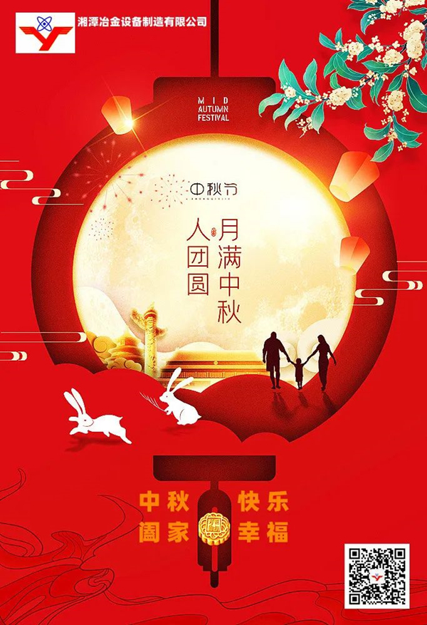 值此中秋佳節(jié)到來之際,湘潭市冶金設(shè)備制造有限公司謹向一直陪伴公司成長、不離不棄的各界朋友、合作伙伴、全體家人們致以深深的感謝與崇高的敬意,并祝大家:佳 節(jié) 愉 快!月圓人圓家圓圓圓滿滿!