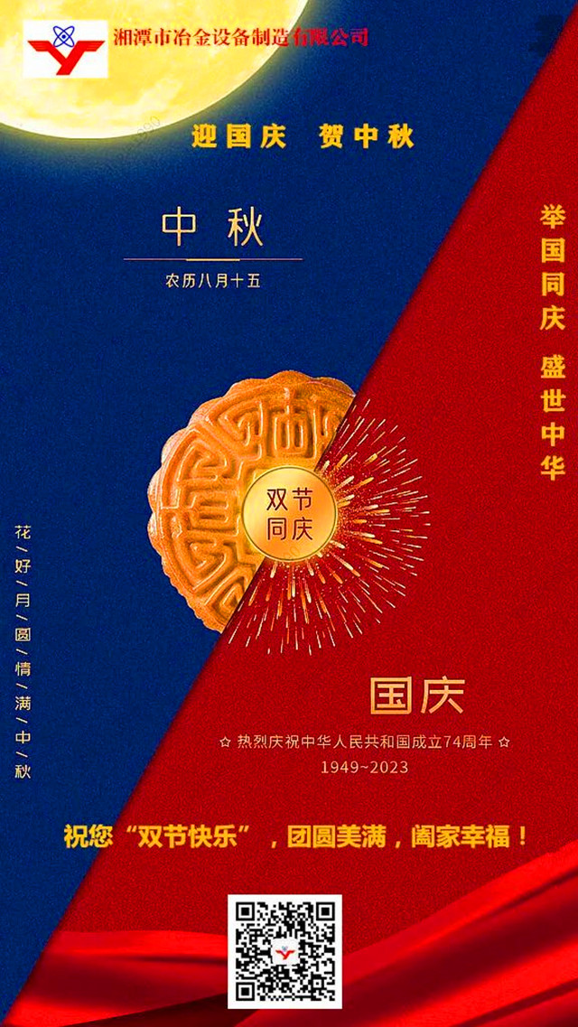 值此中秋、國慶“雙節(jié)”來臨之際,真誠地向辛勤工作在各個(gè)崗位的湘冶家人們致以節(jié)日的慰問并道一聲:大家辛苦了!同時(shí),也真誠地向支持公司發(fā)展的新老客戶、合作伙伴、社會各界朋友、職工家屬們致以誠摯的感謝與節(jié)日的問候。