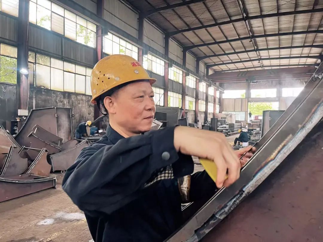 楊襲曾是泰富重工的“一周一打卡”自由職業(yè)者。在行業(yè)寒冬的沖擊下,泰富為了降低成本,不得不采取靈活的用工模式,楊襲在外出尋找工作的過程中,機(jī)緣巧合之下,最終加入了湘冶。盡管他的身份是勞務(wù)關(guān)系,但這從未限制他的擔(dān)當(dāng)。他憑借精湛的鉚焊技術(shù),成立了這個(gè)充滿活力的班組。在越南滾軸篩項(xiàng)目中,楊襲憑借其過硬的鉚焊技術(shù),解決了精密焊接中的難題,通過精準(zhǔn)的電流參數(shù)設(shè)置和獨(dú)特的鉚焊手法,確保了鉚焊質(zhì)量,為項(xiàng)目的順利交付立下汗馬功勞。他不僅技術(shù)過硬,而且工作態(tài)度認(rèn)真負(fù)責(zé),為班組奠定了堅(jiān)實(shí)的基礎(chǔ)。盡管他并非全職員工,但他對工作的投入和專注,讓他在車間里贏得了極高的聲譽(yù)。他深知,只有以身作則,才能帶領(lǐng)班組走向成功。他用自己的行動(dòng)詮釋著什么是敬業(yè)精神,什么是團(tuán)隊(duì)的凝聚力。